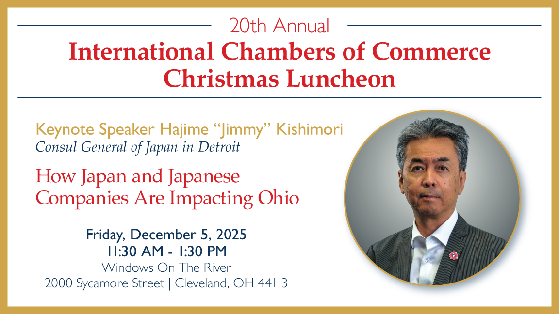 Windows on the River 2000 Sycamore St, Cleveland, OH, United StatesAnnual International Chambers Christmas Luncheon We are pleased to announce that the British-American Chamber of Commerce will be hosting the Annual International Chambers Christmas Luncheon at Windows on the River on December 6th. We warmly invite everyone from Cleveland's international community to attend this special event, featuring keynote speaker Sushan Demirjian, who serves as the […]